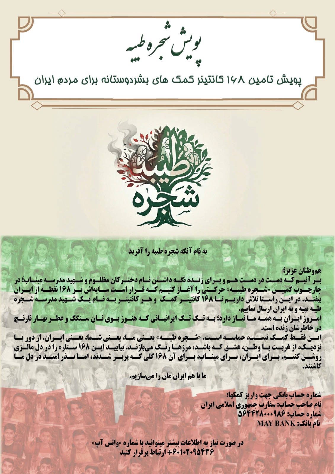 پویش شجره طیبه در مالزی برای جمع آوری کمک های بشردوستانه برای ایران